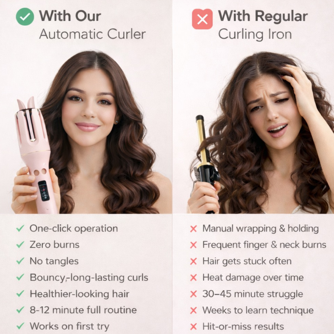 Stop struggling with complicated curling irons that burn your fingers and leave you with uneven results. Pro Curler's revolutionary automatic rotation technology does all the work for you—just place your hair in, press start, and get salon-worthy curls in minutes.